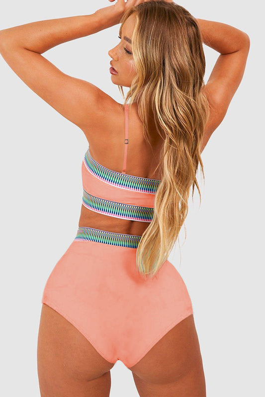 Peach Blossom Contrast Banding Tube Bikini High Waist 2pcs Swimsuit