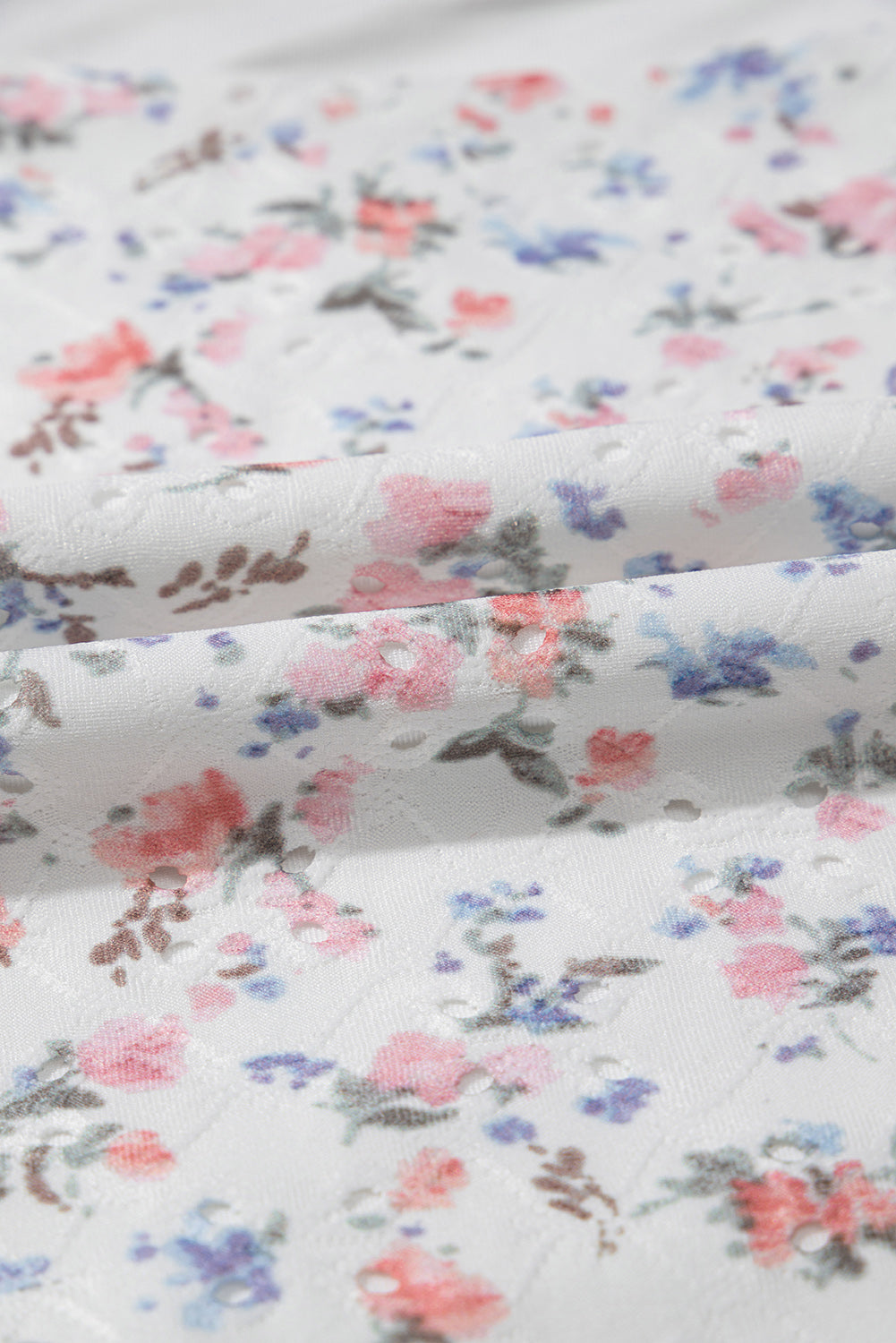 White Floral Textured Square Neck Sleeveless Bodysuit